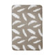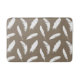 Bathmat in weißem Federdruck auf mittlerem Taupe tan - gemischte mediale Grafik-Design von weißen Federn, schwebend auf einem kontrastierenden, farbigen Hintergrund