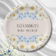 White Floral Blue Hydrangea Garden Baby Dusche Pappteller