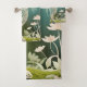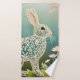 White Floral Rabbit Spring Art Badhandtuch Set