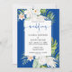 White Flowers on Blue Background Wedding Einladung