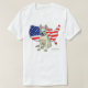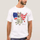 Weißes deutsches Schäferfoto mit der Flagge der Vereinigten Staaten auf der Karte als Hintergrund.