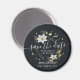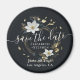 Moderne Vintage Hochzeit speichern das Date Magnet Template - eleganter Schwarz-weißer und goldener Blumenreath. Diese Designs können für Ihren Besondere Anlass Personalisiert sein und wären perfekt für Ihre Hochzeit, Brautparty, Engagement Party, Geburtstagsparty und viele weitere Besondere Anlässe.