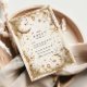 A luminous celestial wedding design glowing in soft white and metallic gold. This invitation features ornate swirling filigree, crescent moons, scattered stars, and shimmering celestial accents that create an ethereal, dream-filled atmosphere. The refined Art Nouveau frame adds a luxurious vintage touch, making it ideal for couples who want a romantic, moonlit, and enchanting celebration aesthetic.