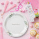 White Modern Wedding Paper Plate. Simple and elegant. Gold enchanced foliage. Personalized. Gold text. Reception.