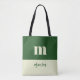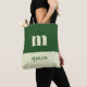 white and green initial personalized tote bag ,
