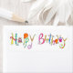 Herzlichen Glückwunsch zum Geburtstag in der kuscheligen Schrift mit Ballons, Geburtstagskuchen und Kuchen auf türkisfarbenem Hintergrund. Der Hintergrund des Etiketts ist weiß. Vollständig anpassbar. Feiern Sie einen Geburtstag oder einen anderen Anlass mit der originalen Kuchen- und Kuchenkunst, die sowohl für Jungen als auch für Mädchen und Erwachsene perfekt ist. Die Farben sind sanfter und lebendiger.