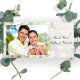 Senden Sie eine Danksagung und Dankbarkeit nach einer Verlobungsfeier, Brautparty oder Gewerkschaft mit der eleganten White Hydrangea Blume Wedding Dankeschön Foto Card. Passen Sie es an mit den persönlichen Namen der Braut und des Bräutigams, dem Datum der Ehe und dem persönlichen Bild des Paares. Diese hübsche individuelle botanische Hochzeit danke Ihnen Fotokarte zeigt ein nahes up Blumenfoto von einer weißen Hydrangea Blüte.