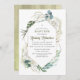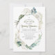Weiße Hydrangea und grüne geometrische moderne Taufe Einladungen