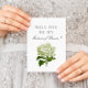 Diese moderne weiße Karte ist eine Visitenkarte für Ihre Ehrenkarte und bietet eine antike, weiße und grüne Hydrangea Blume Stift Illustration mit klassischen und leicht zu personalisierenden Text, gelassen Sie wählen, wie Sie Ihren Brautparty-Mitgliedern "vorzuschlagen".