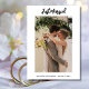 Die exquisite "White Just Married Foto Announcement Card" - eine atemberaubende Verkörperung von Liebe und Engagement, die das Wesen eines frisch vermählten Glücks erfassen soll. Diese elegante Karte ist eine perfekte Mischung aus minimalistischer Eleganz und zeitloser Romantik, die mit den anspruchsvollen Erwachsenen ihre Gewerkschaft feiern wird. Set vor einem unberührten, weißen Hintergrund, ein großes, faszinierendes Foto des glücklichen Ehepaares nimmt die Bühne in der Mitte, ihr strahlendes Lächeln und der liebevolle Blick sprechen Bände über ihre fröhliche Gewerkschaft. Die Einfachheit der Kulisse unterstreicht die Intimität des Augenblicks und lässt die Liebe des Ehepaares in ihrer ganzen Pracht durchleuchten. In eleganter schwarzer Schrift schmücken die Worte "Just Married" die Spitze der Karte und verkünden der Welt den glücklichen Status der Neuvermählten. Der Kontrast zwischen dem kühnen Text und der sanften Kulisse fügt eine Touch von Drama und Raffinesse hinzu und unterstreicht die Bedeutung des Ereignisses. Unter der eindrucksvollen Erklärung wird eine herzliche Botschaft an Freunde und Angehörige geschickt eingeprägt, die dem Ehepaar für seine Unterstützung und Wohlwünsche dankbar ist. Ob es sich um eine traditionelle Hochzeitsankündigung oder um eine Enthüllung im Zusammenhang mit der Entstehung handelt, diese Karte dient als zeitloser Sake und erinnert an einen bedeutsamen Meilenstein auf der gemeinsamen Reise des Paares. Für Paare, die sich entschieden haben, zu elope, deutet die Aufnahme von "wir eloped" subtil auf den intimen Charakter ihrer Gewerkschaft hin und bewahrt gleichzeitig ein Gefühl von Eleganz und Modernität. Diese Ankündigungskarte ist nicht nur ein Schreibstück, sondern ein Symbol für Liebe, Engagement und das Versprechen eines gemeinsamen Lebens. Die "White Just Married Foto Announcement Card" besticht im Wesentlichen dadurch, dass sie den Zauber eines Hochzeitstages in einem schlichten und dennoch raffinierten Design verkörpert. Seine ästhetische Schönheit und thematische Elemente sprechen den Herzen von Erwachsenen, die das Erlebnis der Ehe beginnen, und erinnern sie daran, dass Liebe die bestste Feier aller ist.