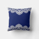 Ein leuchtend königsblauer Hintergrund ist wunderschön kontrastiert mit einem aufwändigen weißen Spitzen-Rahmen in diesem Bild, wodurch ein schönes Kissen, das jedes Zimmer aufhellen wird. Fügen Sie, wenn Sie möchten, Ihren eigenen, maßgeschneiderten Text hinzu. *Bitte beachten Sie, dass das Bild auf der Oberfläche gedruckt ist und keine aktuelle Spitze enthält.* **Erstellt mit Kunstwerken, die von der Digital Design Boutique unter http://digitaldesignboutique.com erworben wurden.