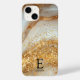 White marble chic gold glitter monogram Case-Mate iPhone 14 hülle