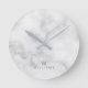 White Marble with Personalized Monogram and Name Runde Wanduhr