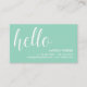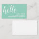 Einseitige, einfache Visitenkarte in minzgrün und weiß mit hello geschrieben in einem eleganten Kalligrafieschreiben.