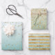White Mint Gold Glitz Sparkle Streifen Leopard Geschenkpapier Set