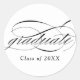 White Modern Elegant Script Abschluss Classic Round Sticker bietet ein schönes und elegantes Drehbuch, zusammen mit Ihrem Unterrichtsjahr.