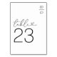 Minimale Schwarz-Weiß-Tischnummern mit Ihren Initialen in der oberen rechten Ecke, das Wort "Tisch" in einem eleganten Skript-Schriftart, das ein Liebe Herz, und die Zahl.