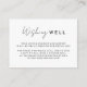 Das Design unserer White Modern Script Wedding Wishing Well Enclosure Card, in der modernes Minimalismus auf die Kalligraphie-Kunst trifft. Diese kuratierte Ästhetik bringt einen Hauch von Raffinesse zu Ihrem besonderen Tag - mit einer Drehung von boho, lässigem Charme. Die Kombination aus einfacher Typografie und einem stilvollen Script-Schriftart verleiht Ihrer Hochzeit eine einzigartige Persönlichkeit. Dieses klassische Design bietet einen zeitlosen, polierten Look, der perfekt für Frühjahr-, Sommer-, Herbst- oder Winterhochzeiten ist. Eine schlichte Farbpalette aus Schwarz und Weiß schafft die perfekte neutrale Kulisse für Ihre Feier. Machen Sie Ihre Hochzeit wirklich elegant mit unserer schönen, modernen Skriptkollektion. Wie bei allen unseren Designs, wenn Sie Fragen oder besondere Wünsche haben, frag einfach.