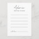 Die Einführung in unser White Modern Script Wedding Advice Card Design, in dem modernes Minimalismus auf die Kunst der Kalligraphie trifft. Diese kuratierte Ästhetik bringt einen Hauch von Raffinesse zu Ihrem besonderen Tag - mit einer Drehung von boho, lässigem Charme. Die Kombination aus einfacher Typografie und einem stilvollen Script-Schriftart verleiht Ihrer Hochzeit eine einzigartige Persönlichkeit. Dieses klassische Design bietet einen zeitlosen, polierten Look, der perfekt für Frühjahr-, Sommer-, Herbst- oder Winterhochzeiten ist. Eine schlichte Farbpalette aus Schwarz und Weiß schafft die perfekte neutrale Kulisse für Ihre Feier. Machen Sie Ihre Hochzeit wirklich elegant mit unserer schönen, modernen Skriptkollektion. Wie bei allen unseren Designs, wenn Sie Fragen oder besondere Wünsche haben, frag einfach.