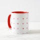 11oz white mug featuring a charming mix of small solid red hearts and hollow red hearts outlined in red, with a matching red handle. Perfect for cozy coffee moments or as a romantic gift.