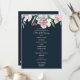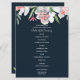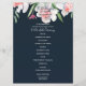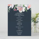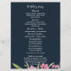 Geschmackvolles Hochzeitsfeierprogramm, das mit weißen und rosa Narzissenrahmen auf dunklem Marinestützpunkt gestaltet wurde. Blume sind in der Nähe. Doppelseitiges Design mit Zeremonie auf der Vorderseite und Brautparty Details und danke Ihnen Text auf der Rückseite. Alle Texte sind formatiert und können einfach durch die Schaltfläche "Diese Vorlage personalisieren" ersetzt oder entfernt werden. Sie können sich weiter in diesem unteren Link anpassen. Koordiniert mit der formalen Einladung und eine ganze Sammlung von Hochzeitsartikeln in diesem Design, aus 3 Farben.