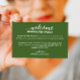 Dieser hübsche weiße Text auf der Waldgrün-Willkommenskarte, die in Ihrer Begrüßungstasche oder in Ihrem Korb in ihrer Unterkunft platziert ist, ist eine gute Möglichkeit, Ihren Gästen aus der Stadt für die Reise zu danken, die sie für Ihre Hochzeit tun mussten.