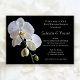 Behalt die frisch verheiratete Braut zu feiern und Bräutigam am Morgen nach ihrer Heiratszeremonie mit der hübschen Weißen Orchidee auf Black Post Wedding Brunch Einladung. Diese elegante Blüte After Wedding Breakfast oder Luncheon Invite zeigt ein Blumenfoto von weißen Phalaenopsis orchid Blume Blüten auf dem Stamm mit schwarzem Hintergrund.