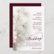 Diese wunderschöne Hochzeitseinladung besticht durch ein prächtiges Design mit einem Hauch von traumhaften weißen Orchideen. Der rechts begründete bordeauxfarbene Text ist mit einem extravaganten Kalligraphieskript mit einem langen, lockigen Schwanz ausgestattet, was ihn sowohl modern als auch klassisch macht. Elegante, raffinierte und schicke Art und Weise, Ihre Freunde und Familie zu einem besonderen Tag einzuladen. Die Rückseite der Karte hat einen QR-Code für Ihre Hochzeitswebsite und eine kurze Notiz, in der die Leute angewiesen werden, die Website für Details und UAWG zu besuchen.