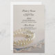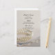 Das klassische "White Pearls and Blue Lace Wedding Menu" mit den Details des Essens, das Sie am Mittag im Brautparty servieren werden, das Hochzeitsessen am Empfang oder das Hochzeitsbrunch mit dem Salat oder dem ersten Gang, dem Vorspeise- oder Zweitgang, dem Dessert oder dem dritten Gang. Dieses elegante, eigens für den Brautpavillon zusammengestellte Menü enthält ein Foto einer weißen Perlenhalskette mit einem Vintagen, blau-weiß gestrichenen Leinentaschentuch.