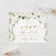 Weiße Pfannkuchen und silberne grüne rustikale Hochzeit speichern das Datum Mailing Karte.