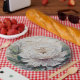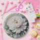 Delikate, weiße Torfblätter bilden eine blühende Blume, die durch grüne und weiche rosa Highlights in schweren Impasto-Farbstrichen hervorgehoben wird