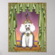 Weiße Poodle Eine Prinzessin aus Fernost (oder Prinz) in goldener Krone und Kostüm ist ein großartiges Geschenk für den Muttertag oder jeden Anlass. Sie ist auf Bühne und trägt ihre Krone und ihren Kap.