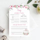 Wasserfarbe PinkBlush Floral Little White Pumpkin Baby Vorhersagen und Advice Game Card. Matching-Elemente verfügbar.
