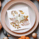 White Pumpkin Fall Leaves Thanksgiving Paper Napkins - gold and rust leaves perfect for Thanksgiving or Friendsgiving celebrations.