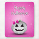 Fröhliche Halloween-Illustration für Mädchen mit einem weißen Kürbis mit einem rosa Bug auf rosa Buche Hintergrund.