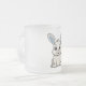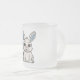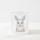 Vector illustration of a smiling white bunny with large, sweet eyes, long, blue ears, and a pink nose, in a cartoon style, on a black background. Suitable as a logo or mascot.