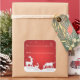 Geschenkticker für die Kollektion Weißer Rentier und Schneeflocken. Eine Familie weißer Rentiere vererbt auf schneebedeckten Hügeln, während knusprige Schneeflocken auf sie herabschweben. Ein roter Hintergrund verleiht dem Design ein warmes, festliches Ambiente. Ideal für Kinder oder die Kinder im Herzen!
