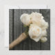 Eine Hochzeitseinladung mit einem Foto aus einem Strauß weißer Rosen mit Stielen, die in einen Burlgarn über einem Hintergrund aus Barnholz eingewickelt sind. Auf der gegenüberliegenden Seite, die auch mit dem Hintergrund aus Barnholz versehen ist, können Sie Ihre Veranstaltung individuell gestalten.