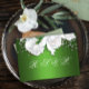 White Rose Bouquet und Metallic Green Wedding RSVP