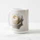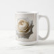 This classic white mug features a white rose on a white background on both sides of the mug. The mug is a fifteen ounce mug. The mug is a classic style mug.