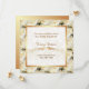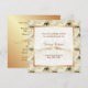 Fein und elegant in goldgekleideten Damast, mit einer schönen Fülle von weißen Rosen an der Grenze. Passen Sie Ihre Brautparty-Informationen auf Vorder- und Rückseite an.