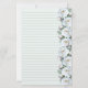 Schreibwaren aus weißem Rosen mit Linien. Jedes Blatt ist sehr hellgrün, mit grauen Linien und einem Rand mit weißen Rosen auf der rechten Seite. Reverse hat einen Hintergrund von Rose. Das Papier verfügt über optionale Upgrades.