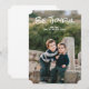 Mit dieser personalisierten White Simple Script Be Joyful Foto Flat Card könnt ihr die Saison genießen. Diese Foto-Grußkarte ist dazu gedacht, Ihr Lieblingssymbol oder Weihnachts-Foto zu präsentieren. Ein sauberes und einfaches Layout hebt Ihr Foto hervor, während handgeschriebene Skripte in Verbindung mit eleganter Typografie die festliche Botschaft in knackigem Weiß zeigen. Die elegante und zeitlose Karte ist ein herzliches Mittel, um den Lieben während der Ferienzeit Wärme und Freude zu vermitteln. Fotografie © Storytree Studios, Stanford, CA