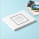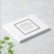 Weißes, einfaches Gästebuch mit stilisierten Foliendrucken innerhalb eines quadratischen Rahmens, der den Namen der Braut und des Bräutigams sowie das Hochzeitstermin in Ihrer Auswahl an Farbfolienprint zeigt. Hier in Silberfolie gedruckt. Wählen Sie Ihren Gastbuchstil aus.