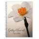 Erstellen Sie ein einzigartiges Gästebuch oder ein Beratungsbuch für die Neuvermählten, wenn Sie das hübsche White Spring Daffodil Wedding Spiral Notebook personalisieren. Dieses klassische, individuell gestaltete Botanische Brautnotenbuch zeigt ein Blumenfoto einer Blütenblüte aus weißer Narzisse mit einem orangefarbenen Zentrum oder Narzissengeran am Stiel mit beigem Hintergrund.