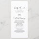 Annoncez l'ordre de votre cérémonie de mariage avec le joli programme de mariage des jonquilles de Printemps Blanc. Personnalisez-le avec les noms de la mariée et du marié ainsi que les détails de la cérémonie du mariage de la fête du jardin de mars, avril ou mai et le calendrier. Cet élégant programme de nuptiale botanique personnalisé comprend une photographie florale d'une fleur de jonquille blanche avec un centre orange ou de narcisse géranium sur la tige avec un arrière - plan beige.