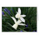 Peruestweiße Daffodil mit tiefgrünem Blattwerk und einem Sprinkling von Traubenhyakinthen. Zeit Unschuld.