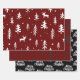 White Trees Illustrations Red Christmas Pattern Geschenkpapier Set