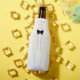 Ein weißer Smoking, der für eine Hochzeit mit Trauzeuge-Text gekleidet ist, den Sie bearbeiten können. Wenn Ihre Hochzeitsbedürfnisse immer gering sind, dann ist hier eine Themenflasche aus den 20er Jahren cooler für Sie.