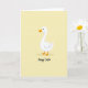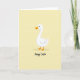 This card features a simple illustration of a white waterfowl centered on a soft, buttery yellow background, giving the scene a gentle springtime glow 🌷. The bird’s curved neck and rounded body are shaded with light gray, adding a quiet sense of closeness, like it’s leaning in to greet someone it cares about. Warm orange details define its webbed feet and slightly open beak, and a small touch of red inside the mouth suggests a friendly, almost smiling hello. The open space around the figure keeps the focus on the bird, like a calm pause before a shared holiday moment 🐰. Near the bottom, the words “Happy Easter” are placed beneath the bird in a flowing, handwritten-style lettering. The text appears in a darker tone that stands out clearly against the pale yellow, with generous spacing that keeps it airy and easy to read. The background remains a smooth wash of yellow with no added patterns or objects.